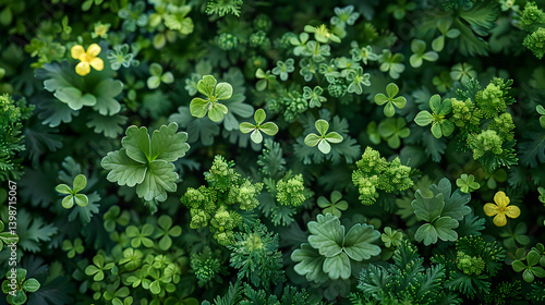 foliage, green, leaf, clover, yellow, flower, nature, plant, ground cover, vegetation, flora, leafy, garden, forest, botany, natural, environment, texture, pattern, closeup, detail, fresh, vibrant, lush, wild, growth, bloom, spring, summer, floral, botanical, organic, background, macro, field, meadow, lawn, park, wildlife, herb, wild plant, shamrock, lucky, arboretum, leaf, dense