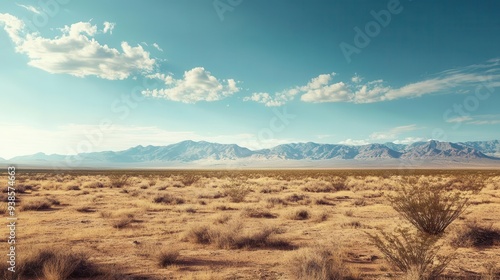 A desert landscape with a few bushes and a spectacular sky