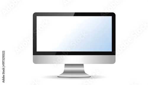 A desktop computer screen shows a blank white/light blue gradient. The sleek silver frame and base suggest a modern design. The image sits isolated on a white backdrop
