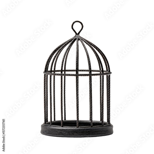 A detailed depiction showcasing an empty birdcage, representing captivity, freedom, and confinement, symbolizing limits and aspirations