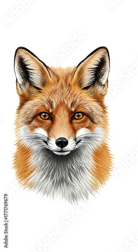 fox, head, portrait, animal, wildlife, fur, orange, white, face, eye, gold, detail, render, digital, illustration, creature, mammal, art, high-coloured, expression, isolated, realistic, closeup, glance, curious