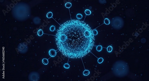 A detailed digital illustration of a virus cell, showcasing its structure and potential impact on health and research