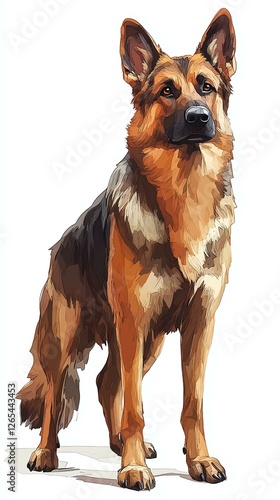 A detailed illustration of a German Shepherd standing proudly, showcasing its strength and loyalty.