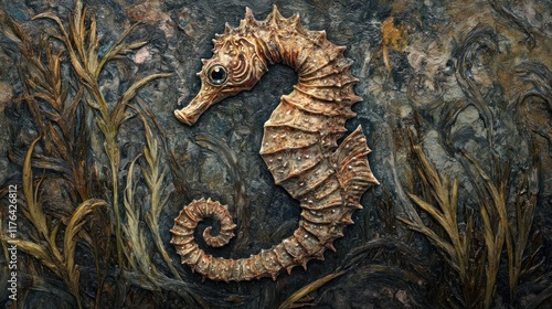 seahorse, ocean, marin, aquatic, nature, wildlife, fish, underwater, texture, art, design, illustration, sea, habitat, environment, biology, organism, creature, fauna, coral, reef, beauty, colours, pattern, detail, realism, natural, ecosystem, species, swimming, oceanography, conservation, biodiversity, wave, motion, calmness, serenity, depth, exploration, ocean floor, life, elegance, unique, adaptation, symmetry, curve, fin