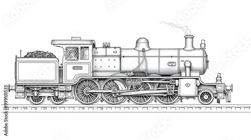 train, steam engine, locomotive, vintage, railway, railroad, transportation, antique, old, classic, black-and-white, vignetting, drawing, illustration, vector, graphic, design, industrial, technology, engineering, history, travel, journey, speed, power, machinery, wheel, track, line, steam train, rail, retro, steam locomotive, line art, historical, nostalgic