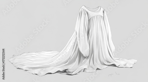 “A detailed sketch of a vintage period nightgown, showcasing elegant design and graceful historical fashion.