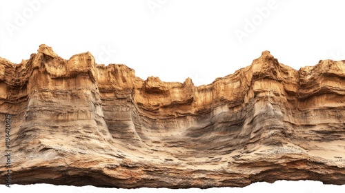 A detailed view of Martian cliffs with sharp ridges and layered sedimentary rocks, isolated on white