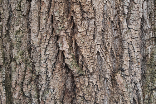 A detailed view of rugged tree bark, showcasing natural patterns, cracks, and earthy textures, perfect for nature and texture-focused projects