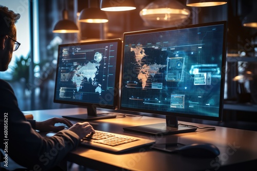 monitoring, multiple, database, efficiency, facility, networking, programming, coding, setting, software, technician, cyberspace, code, cyber, innovation, interface, engineer, showing, system, futuristic, science, security, development, screen, working, control, display, information, laptop, cyberspace, agency, artificial intelligence, minimalist, developer, office, sleek, center, workstation, supervision, screen, web, communication, computer, administrator, air, technology, ai, modern