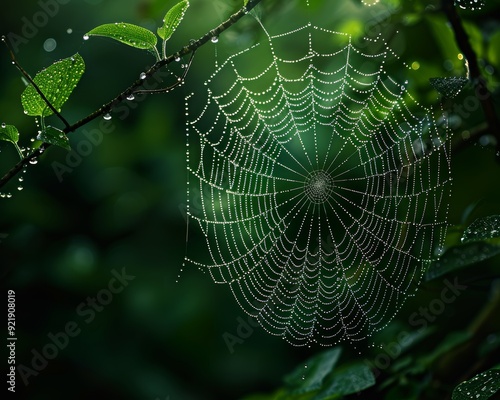 dewy, spider's web, hang, green, leaf, glisten, morning, light, nature, water, arachnid, beauty, fresh, connect, balance, sunlight, tranquil, thread, sparkle, clean, garden, semitransparent, sunrise, dew, shimmer, environment, fragile, moisture, trap, delicate, glistering, decoration, intricate, network, pattern, cool, greenery, fauna, elegant