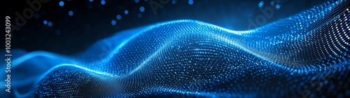 A digital 3D wave moving over a dark background. Dynamic blue particles. Big data concept. Cyberspace illustration.
