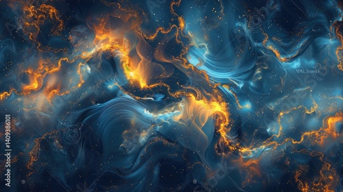 A digital art piece showcasing an abstract representation of the ocean, with swirling colors and shapes