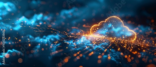 A digital artwork depicts a glowing cloud resembling Earth in deep space, connected by digital neurons. Neon lights and particles enhance a futuristic vibe.