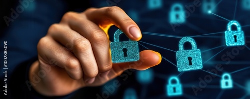 A digital data warehouse shielded by glowing padlocks and global network lines