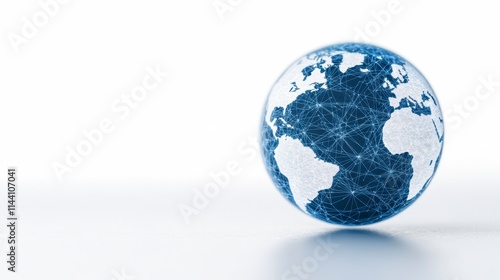 A digital globe representing interconnected continents, showcasing a modern, networked world in blue and white tones.
