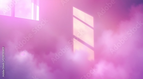 A digital painting depicting a soft dreamy atmosphere contrasted by strong hard light and neon reverberation, featuring direct harsh shadows and hazy soft light, rendered in vibrant neon colors.