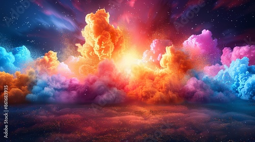cloud, colourful, blue, orange, pink, purple, abstract, background, landscape, dramatic, sky, art, illustration, design, graphic, vibrant, bright, fantasy, dreamlike, aethereal, digital artwork, artwork, modern art, digital illustration, heavenly, atmospheric, high-coloured, intense, dynamic, surreal