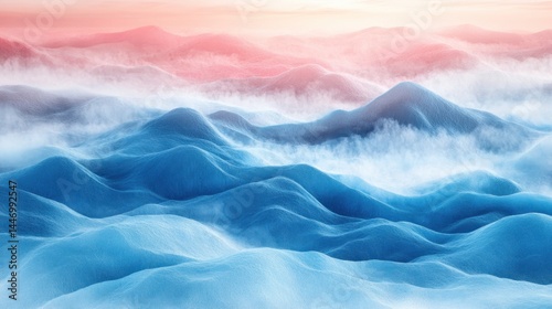 digital, rendering, aethereal, pastel, mountain, range, landscape, colours, blur, texture, soft, light, fog, mist, peak, vale, hill, contour, blues, pink, orange, sunrise, sunset, vibrant, subtile, artistic, impressionistic, abstract, smooth, delicate, shape, form, background, design, fantasy, nature, imagination, dreamlike, exploration, atmospheric, elevated, view, horizon, gradation, palette