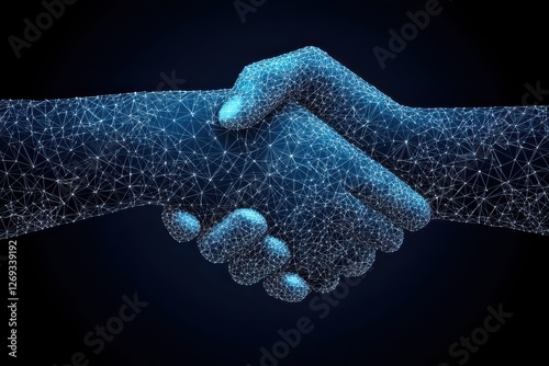 A digital representation of two hands shaking, symbolizing partnership and collaboration in a tech-driven world.