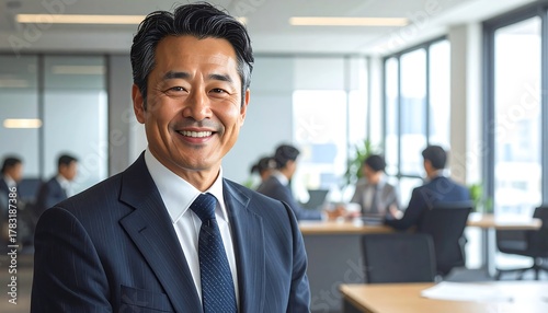 portrait, smiling, businessman, suit, office, asian, professional, confident, executive, leadership, corporate, modern, team, meeting, collaboration, successful, positive, expression, face, formal, attire, elegant, sharp, focused, work, career, finance, management, ambition, growth