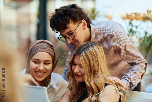 A Diverse MultiEthnic Group Reviewing Projects During a Work Break in a Caffee.