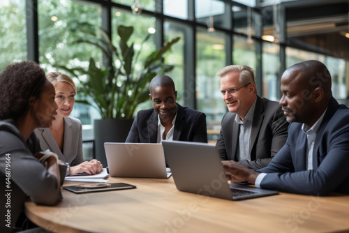 A diverse team engaged in a productive business meeting, collaboration and effective communication