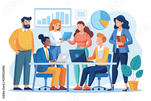 team, colleague, office, modern, workplace, work, collaboration, diverse, teamwork, meeting, business, professional, people, laptop, computer, desk, chart, graph, presentation, communication, project, discussion, productivity, success, strategy, innovation, growth, creativity, problem solving, leadership, management, businessperson, employee, career, technology, partnership, synergy, brainstorming, idea, solution, progress, achievement, result, performance, engagement, motivation