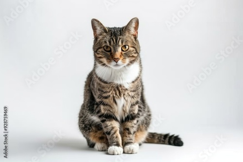 cat, animal, pet, felino, domestic, cute, furry, gaze, stare, look, white, background, surface, calm, pose, sitting, photo, studio