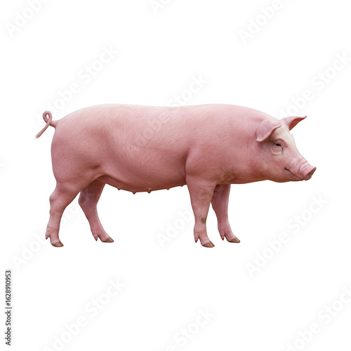 A Domesticated Swine Stands Proudly Isolated On White Background
