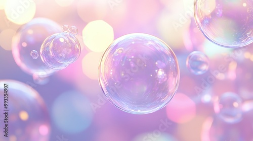 A dreamy pastel bokeh backdrop showcases soft translucent bubbles drifting gracefully evoking a tranquil and otherworldly ambiance