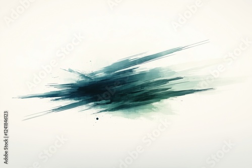 A dynamic abstract brush stroke in shades of green and blue on a light background.