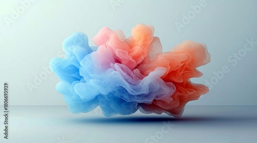 A dynamic, abstract cloud formation of soft, swirling smoke in vibrant blue and orange colors, set against a minimalist light blue background.