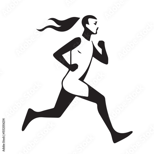 runner, athlete, jogging, sprint, marathon, sport, exercise, fitness, training, healthy, active, speed, motion, movement, race, competition, stamina, endurance, progress, achievement, female, woman, silhouette, human, figure, dynamic, abstract, graphic, vector, illustration, isolated, black, white, simple, clean, energy, performance, body, pose, stride, swift, powerful, challenge, track