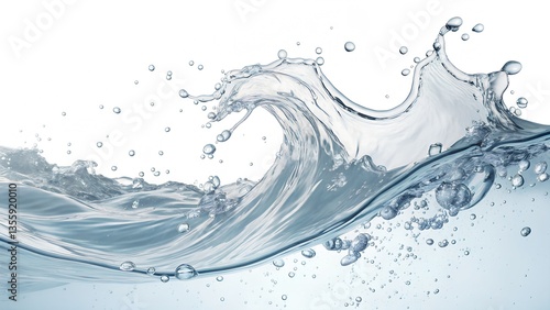 water, wave, splash, fluid, liquid, motion, dynamic, transparent, blue, clear, clean, crest, droplet, sea, ocean, ripple, water, nature, abstract, art, design, background, white background, fresh, purity, refreshment, surface, still life, texture, shape, form, energy, strength, power, movement, light, waterdrop, isolated, flowing