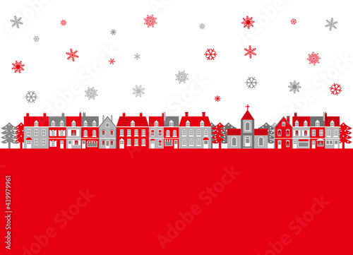 illustration, vector, landscape, street, house, shop, church, chapels, christmas tree, christmas, snow, snowfall, snowflake, cute, building, architecture, apartment, property, residence, residential, traditional, vintage, retro, european, american, outdoors, town, city, urban, front, facades, roof tile, tower, window, door, attic, loft, chimney, decoration, season, greeting, set, background, card, cartoon, flat, simple