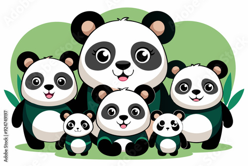 panda, family, cartoon, cute, animal, adorable, black, white, green, happy, smiling, eye, nose, mouth, ear, fur, belly, paw, bamboo, forest, nature, illustration, graphic, design, character, baby, young, adult, mother, father, children, sibling, love, togetherness, oneness, joy, happiness, affection, bond, playful, cuddly, friendly, innocence, sweet, peace, harmony, calmness, wildlife