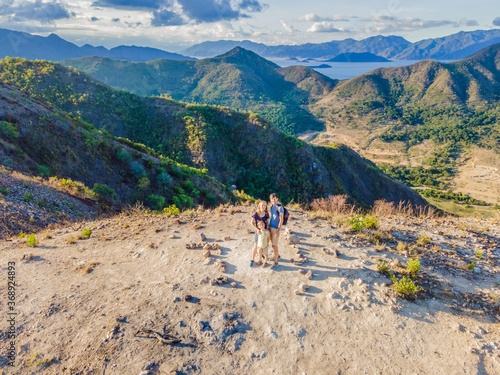 A family of local tourists goes on a local hike during quarantine COVID 19