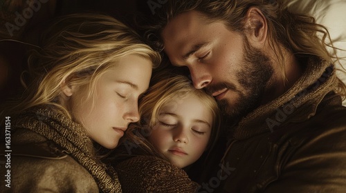 A family of three sleeps peacefully.
