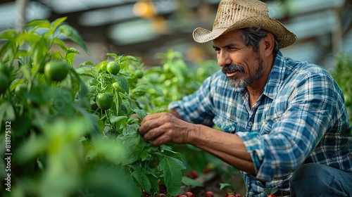 farmer, inspecting, row, healthy, plant, agriculture, farming, vegetation, nature, green, produce, harvest, organic, sustainable, cultivation, dirtied, growth, sunlight, watering, irrigation, nutrient, senior, garden, people, old, person, elderly, outdoors, gardening, hat, tree, woman, summer, gardener, field, smile, fruit, lifestyle, 1, men at work, active, mature, flower