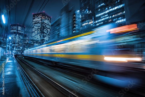 train, city, night, motion, blur, urban, fast, speed, light, skyscraper, modern, track, commuter, transport, japanese, blue, yellow, light, architecture, evening, street, movement, image, city landscape, elevated, rapid, blurred, night time, bright, station, illuminated, infrastructure, nightlife, urbanisation, tower block, railroad, technology, electric, transit