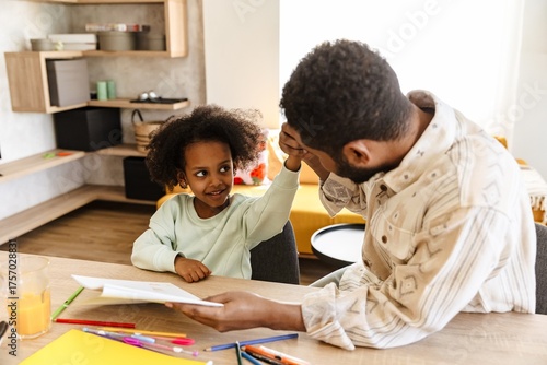 single, eltern, family, father, daughter, indoor, drawing, table, art, relaxation, creativity, interaction, guidance, learning, attentive, supportive, engagement, participation, together, casual attire, home, shared, involvement, joyful, playful, observation, affectionate, cooperative, domestic, cheerful, imaginative, focused