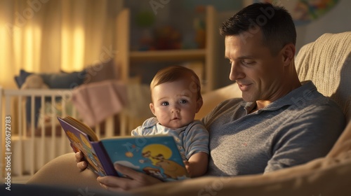 father, baby, childcare center, storybook, reading, warmth, softness, colourful, curious, happy, expression, family, bonding, bedtime, love, children, parenting, infancy, comfort, literature, imagination, childhood, cosy, development, education, storytelling, infant, care, joy, learning, emotion, togetherness, interaction, fatherhood, eltern, explore, newborn, safety, tenderness, connection, gentle, happiness, wonder, peaceful, security, nurturing, discovery