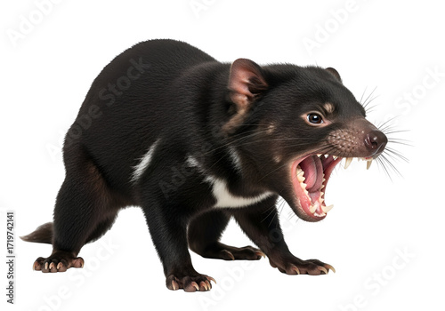animal, devil, mammal, wildlife, carnivore, teeth, mouth, fierce, black, white, nature, portrait, isolated, australia, fur, paw, claw, predator, screech, wild, dangerous, alert, standing, sharp, ferocious, strong, creature, beautiful, colourful, bright, creative, modern, elegant, stylish, professional, decorative, vibrant, stunning, amazing, marvellously, fantastic, gorgeous, lovely, charming, attractive, impressive, spectacular