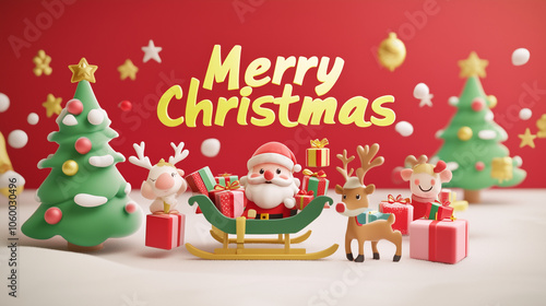 christmas, holiday, festive, celebration, three-dimensional, illustration, santa, reindeer, sleigh, present, gift, christmas tree, star, red, white, green, cheerful, joyful, happy, festive season, holiday spirit, merry christmas, winter, december, season, christmas card, christmas background, christmas design, winter landscape, holiday season, christmas spirit