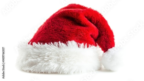 a festive santa claus hat on a pure white backdrop creating a simple yet powerful image that evokes the spirit of christmas and holiday cheer and tradition in winter season