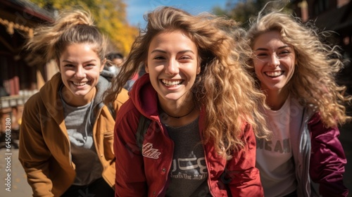 A few girlfriends having so much fun together on the street.