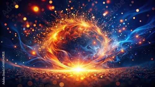 A Fiery and Icy Cosmic Dance An Abstract Image of Glowing Energy and Sparkling Particles