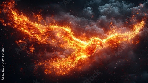phoenix, mythical, creature, bird, imagination, legend, fantasy, flames, soaring, flying, storm, cloud, dark, sky, orange, red, hot, energy, spirit, power, rebirth, symbol, divine, heaven, earth, elemental, symbolism, artistic, design, illustration, digital, art, nature, beauty, powerful, fierce, wild, freedom, fiery