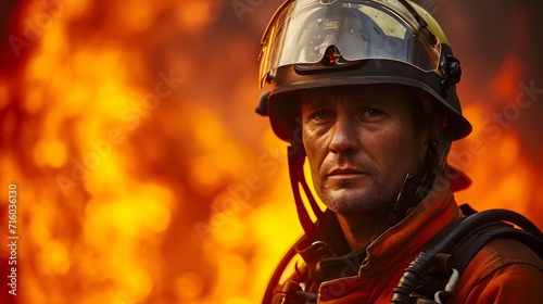 a firefighter standing in front of a fire with a helmet on and a fire hose in his hand
