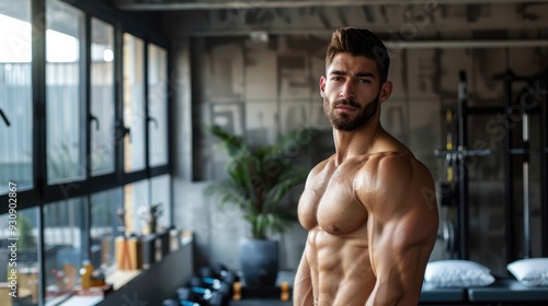 fit, young, male, presenter, pose, contemporary, gym, clear, natural, light, raw, photo, genuine, setting
